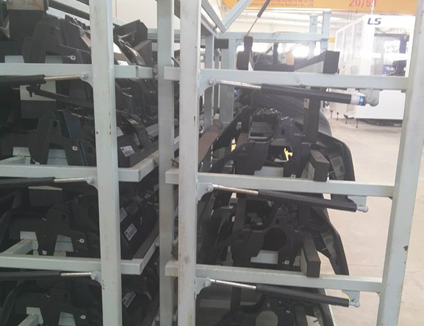 產(chǎn)品簡介:此產(chǎn)品為汽車零配件物料周轉(zhuǎn)架。該周轉(zhuǎn)器具主要是在生產(chǎn)現(xiàn)場或者車間用于存放生產(chǎn)對象或工具的裝置,方便工人生產(chǎn)使用,也是生產(chǎn)環(huán)節(jié)中必不可少的。同時也對產(chǎn)品質(zhì)量,消除無效的勞動和浪費(fèi),提供工作效率,車間管理等起著不可估量的作用。